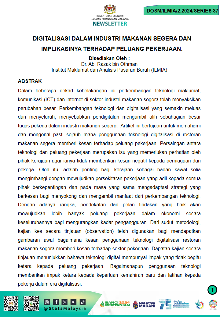 DOSM/ILMIA/2.2024/SERIES 37 - Digitalisasi Dalam Industri Makanan Segera dan Implikasinya Terhadap Peluang Pekerjaan