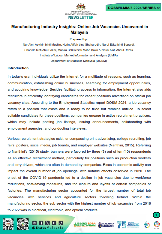 DOSM/ILMIA/3.2024/SERIES 41 - Manufacturing Industry Insights: Online Job Vacancies Uncovered in Malaysia