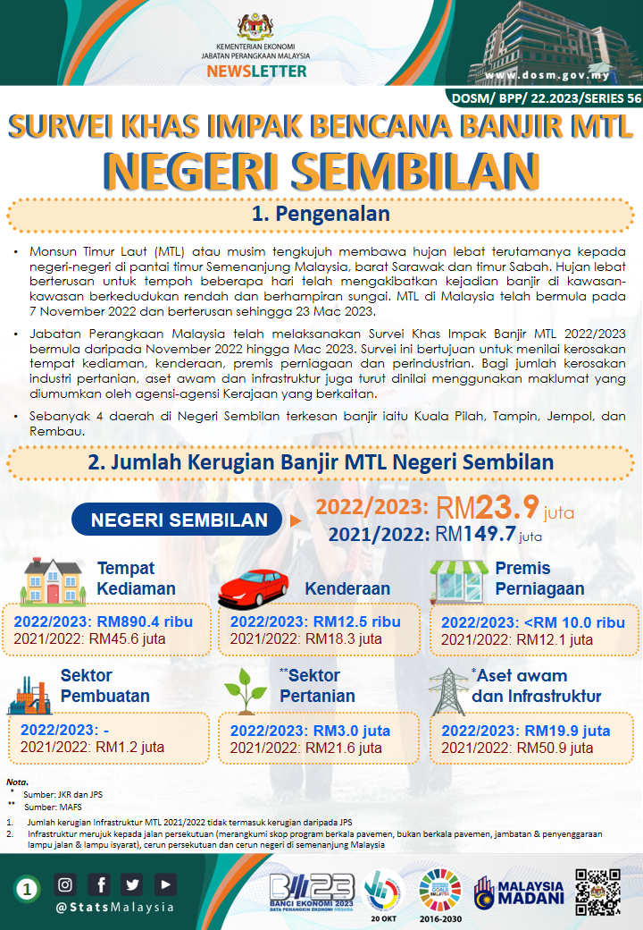 DOSM/BPP/22.2023/SERIES 56 - Survei Khas Impak Bencana Banjir Monsun Timur Laut – Negeri Sembilan