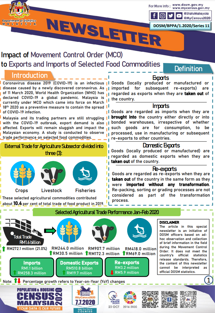 DOSM/BPPA/1.2020/Series 11 (Impact of Movement Control Order (MCO) to Exports and Imports of Selected Food Commodities)