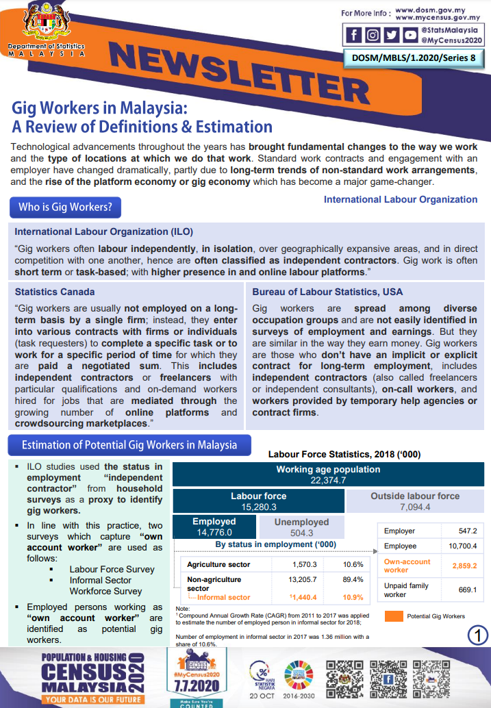 DOSM/MBLS/1.2020/Series 8 (Gig Workers in Malaysia: A Review of Definitions & Estimation)