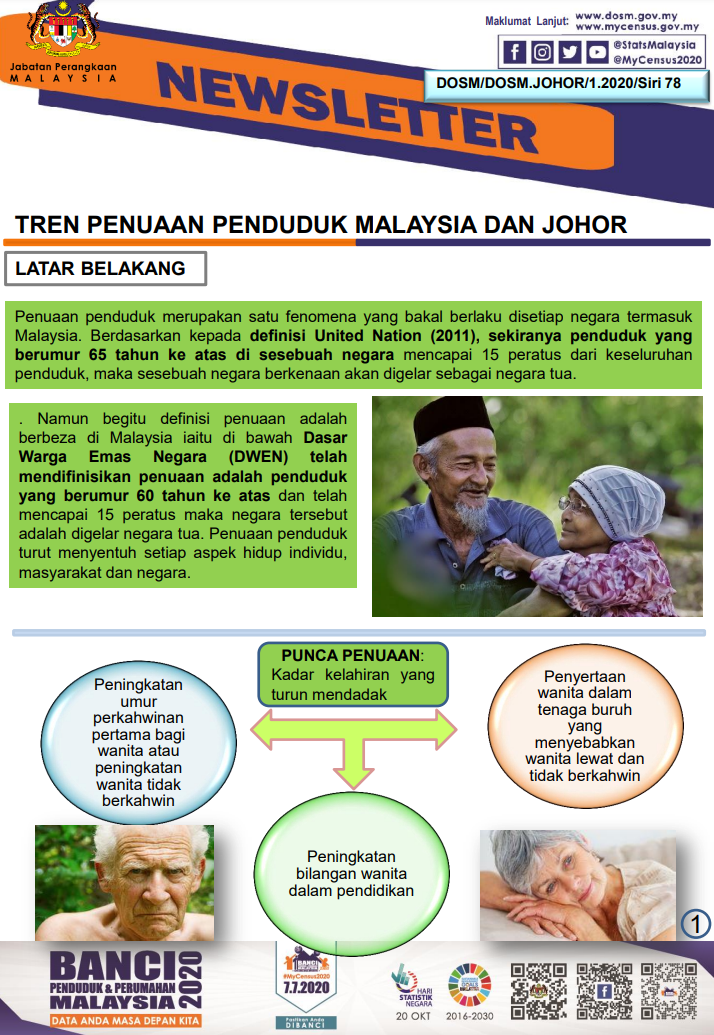 DOSM/DOSM.Johor/1.2020/Series 78 (Malaysian and Johor Population Aging Trends) *