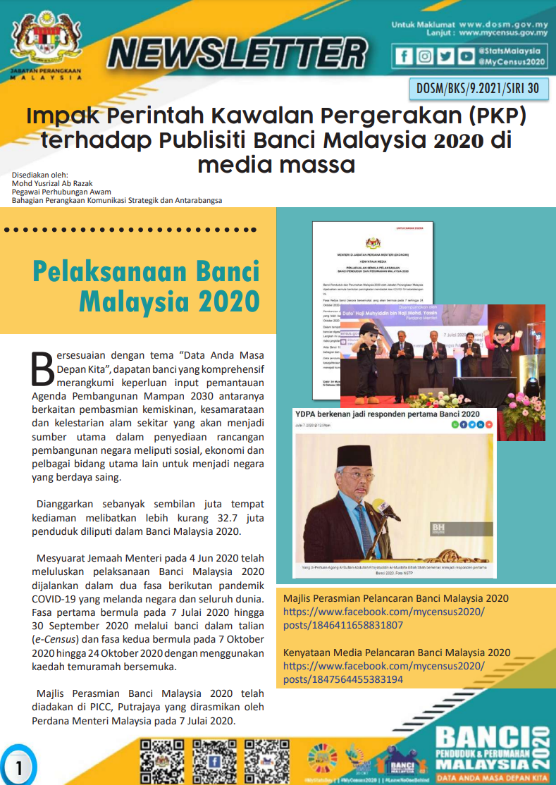DOSM/BKS/9.2021/Series 30 - The Impact of the Movement Control Order on the Publicity of the 2020 Malaysian Census in the Mass Media