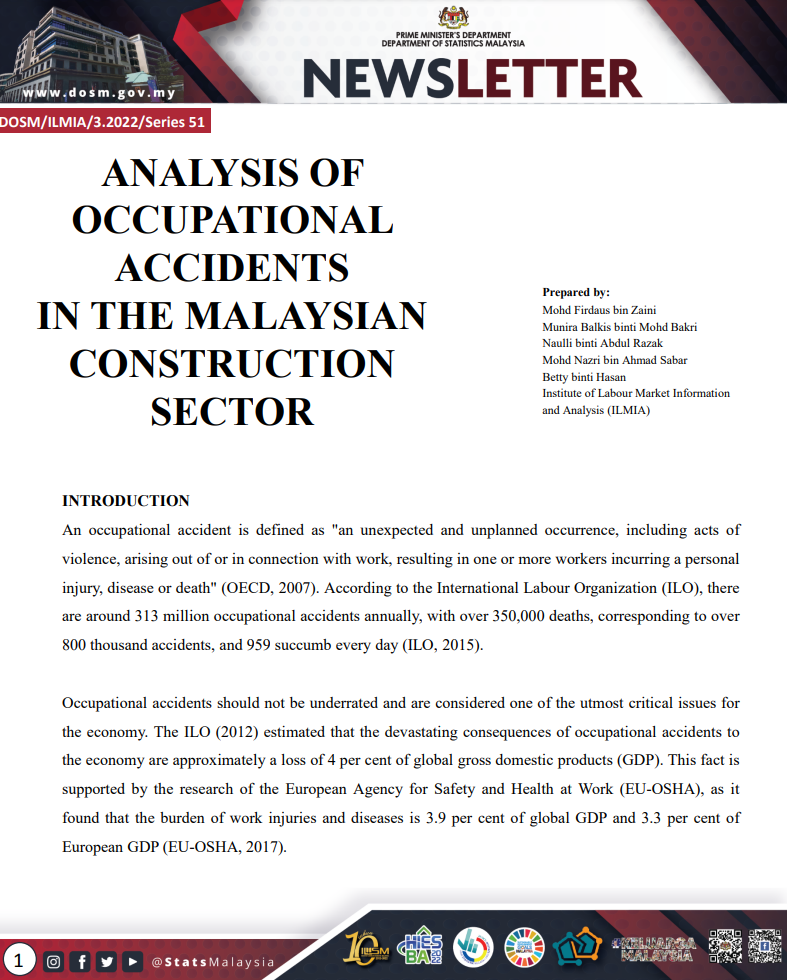 DOSM/ILMIA/3.2022/Series 51 - Analysis of Occupational Accidents in The Malaysian Construction Sector