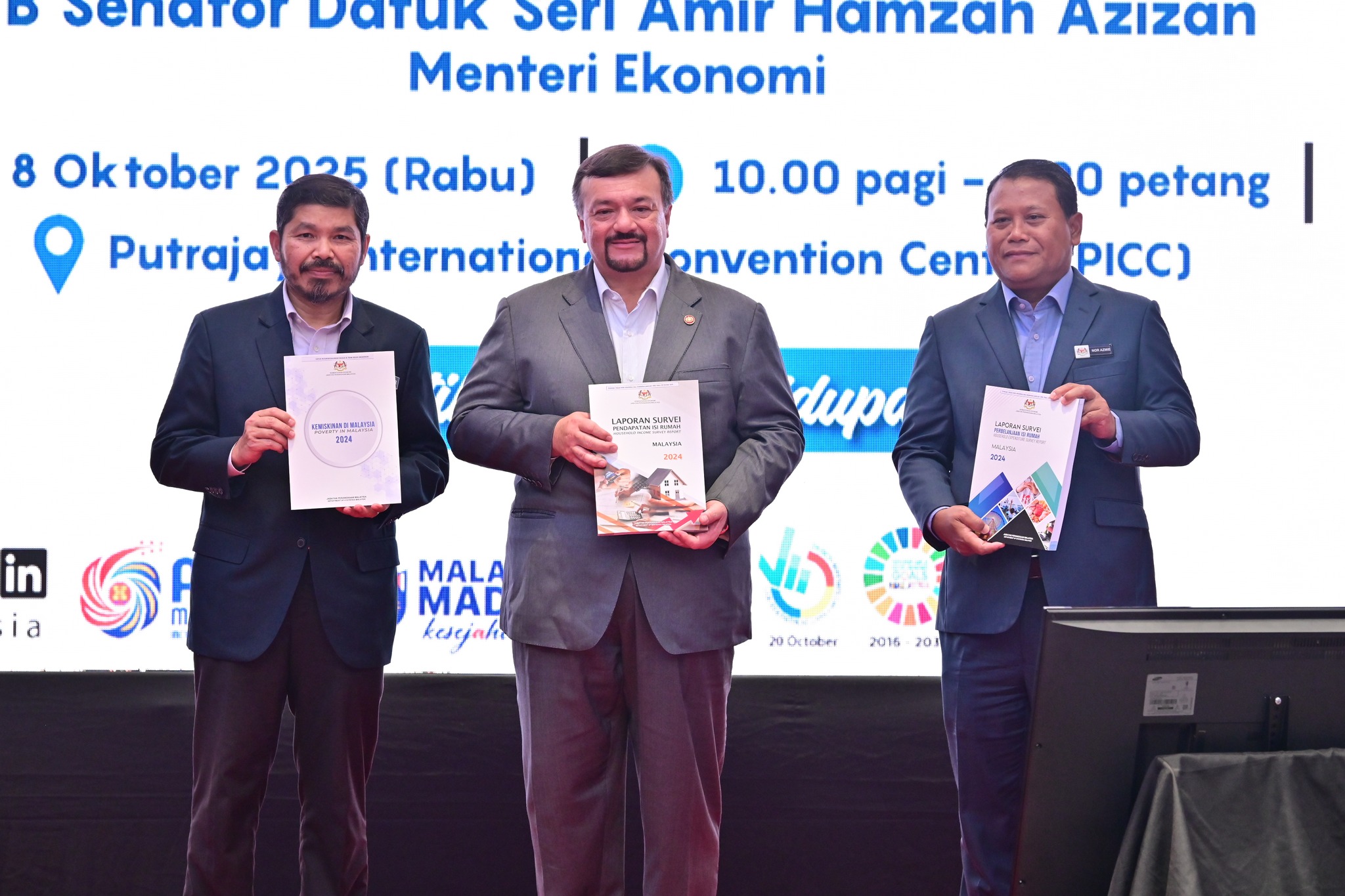 Sekitar Majlis Peluncuran Laporan Survei Pendapatan dan Perbelanjaan Isi Rumah (HIES) 2024 pada 8 Oktober 2025 di PICC, Putrajaya yang dirasmikan oleh YB Senator Datuk Seri Amir Hamzah Azizan, Menteri Ekonomi.