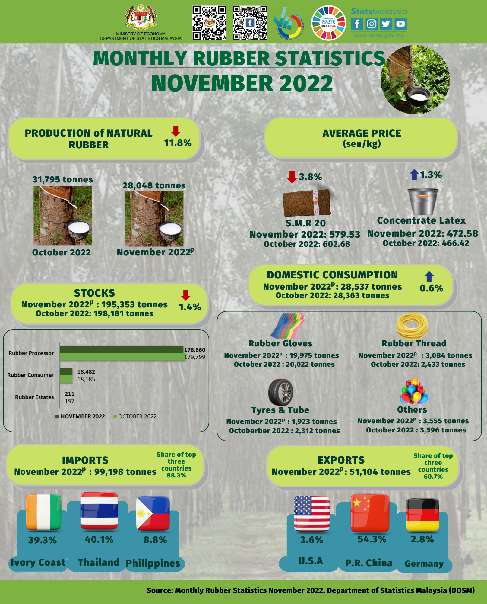 The full publication of the Monthly Rubber Statistics, November 2022 can be downloaded through eStatistik portal.