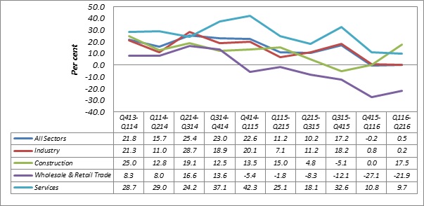 Chart II: Confidence Indicator by Sector, 2013-2016