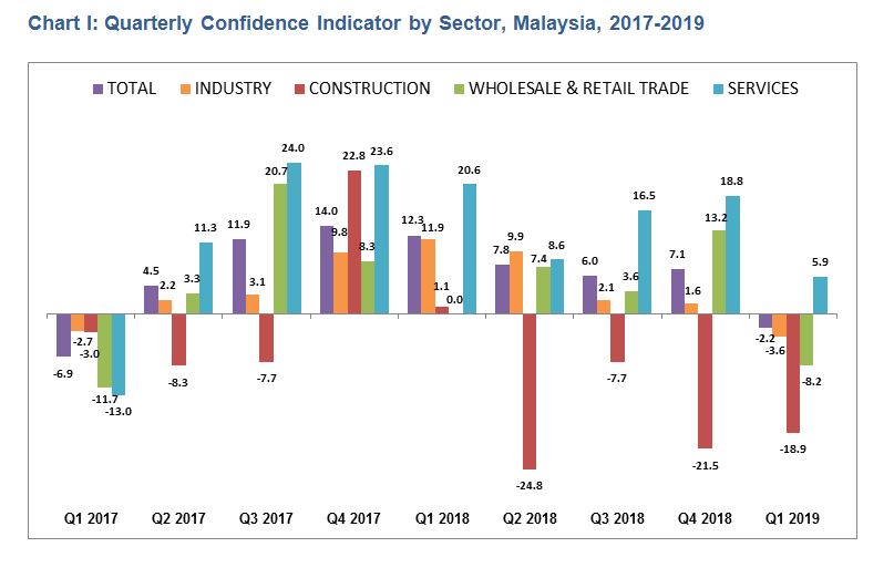 Businesses confidence lessen in the first quarter of 2019. After showing an increase in the fourth quarter of 2018, the confidence indicator dropped to -2.2 per cent in the first quarter of 2019.