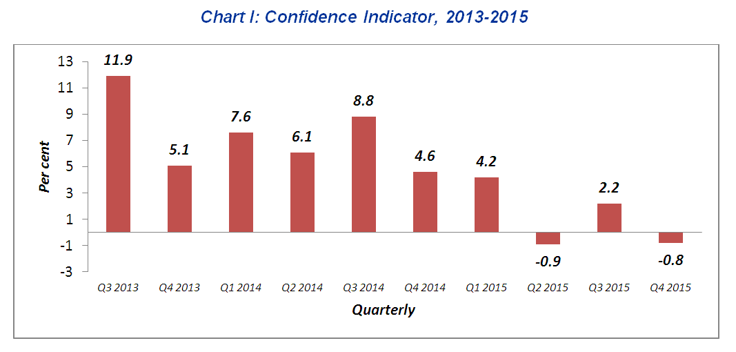 Business performance in the fourth quarter 2015 is expected to slow down, as shown by the confidence indicator -0.8 per cent as compared to +2.2 per cent in the third quarter of 2015.