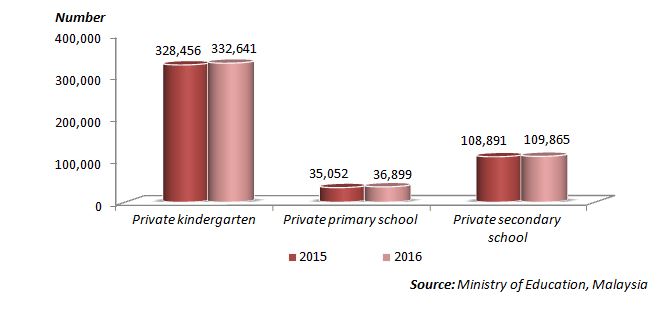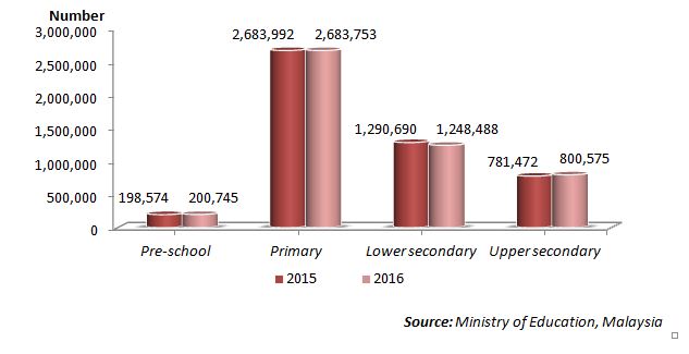 Chart 3: Pupils in private school by level of education, Malaysia, 2015 and 2016