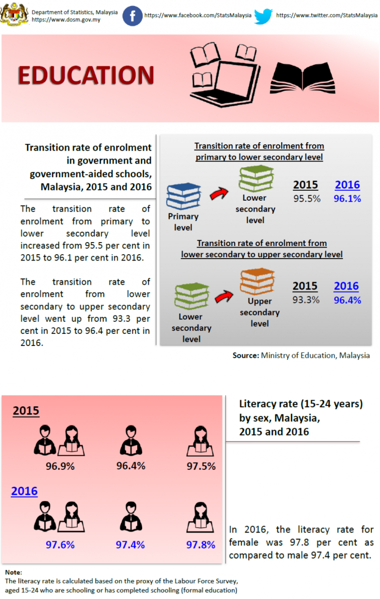 Chart 2: Pupils in government and government-aided school by level of education, Malaysia, 2015 and 2016