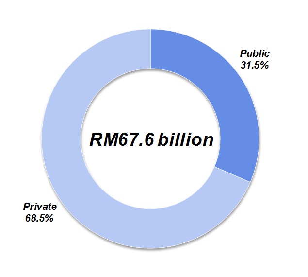 Gross Fixed Capital Formation (GFCF) ascended to 7.9 per cent (Q4 2014: 4.3%) which was induced by the robust performance of Structure (9.9%) and a rebound in Machinery & Equipment (5.8%). The expansion in GFCF was spearheaded by Private sector (share: 68.5%) with a growth of 11.7 per cent.