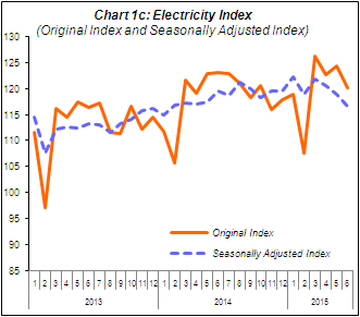 PERFORMANCE OF ELECTRICITY SECTOR The Electricity sector output fell 2.3% in June 2015 on yearly basis. In seasonally adjusted terms, Electricity sector output contracted by 2.0% in June 2015 as compared to the previous month. |