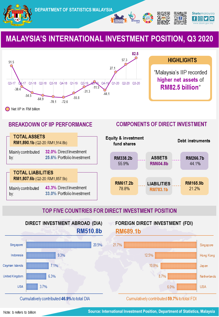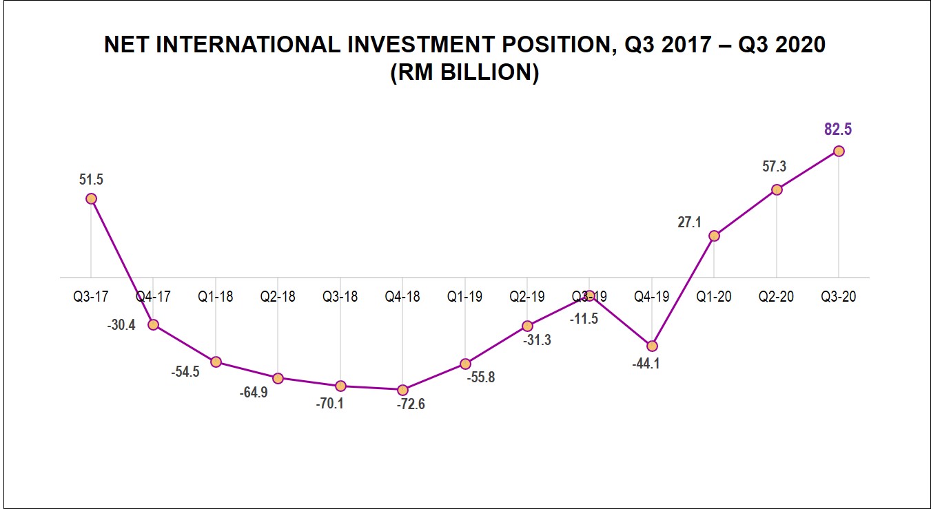 Malaysia's international investment position continued to record net assets of RM82.5 billion