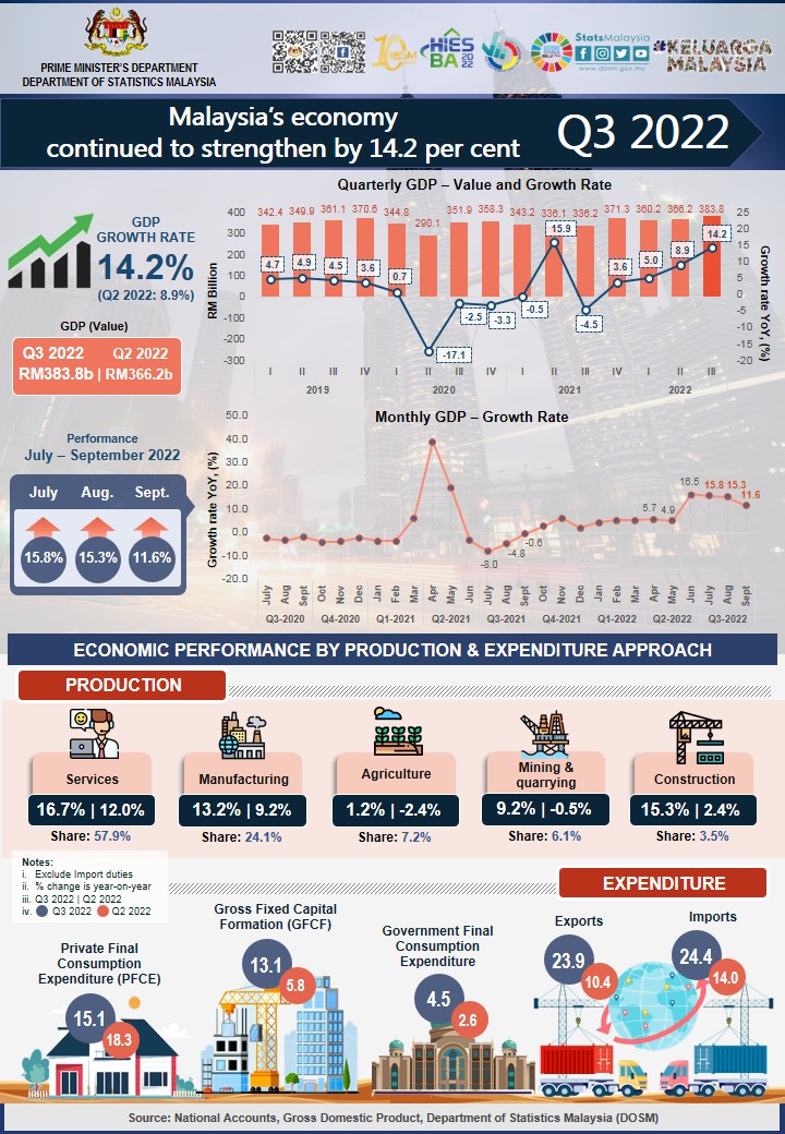 The full publication of Gross Domestic Product, Third Quarter 2022 can be downloaded through eStatistik portal.
