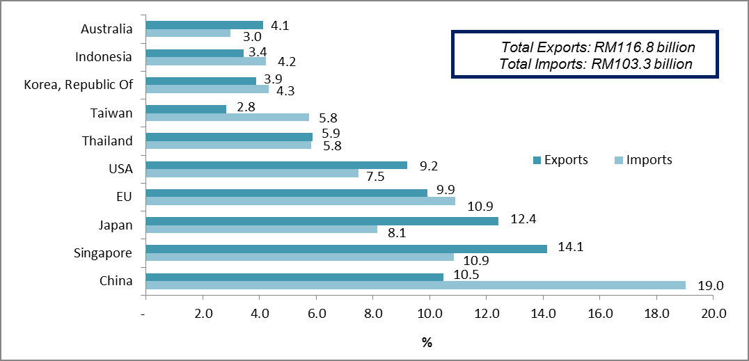 The following charts show Malaysia's major trading partners for January - February 2015.