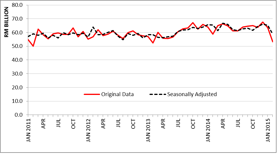 On a m-o-m basis seasonally adjusted terms, imports increased RM2.1 billion (+3.8%) to RM57.7 billion.