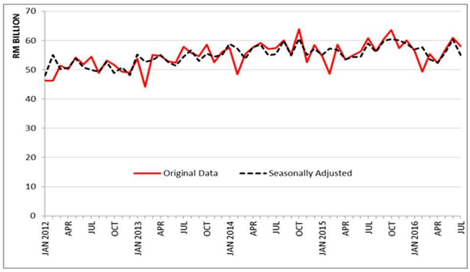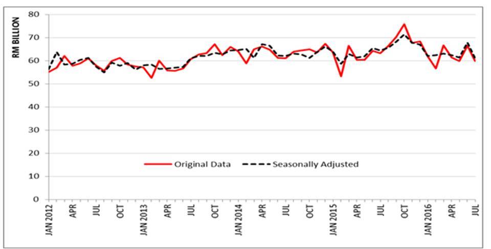 On a m-o-m basis seasonally adjusted terms, imports fell RM5.5 billion (-9.2%) to RM54.9 billion.