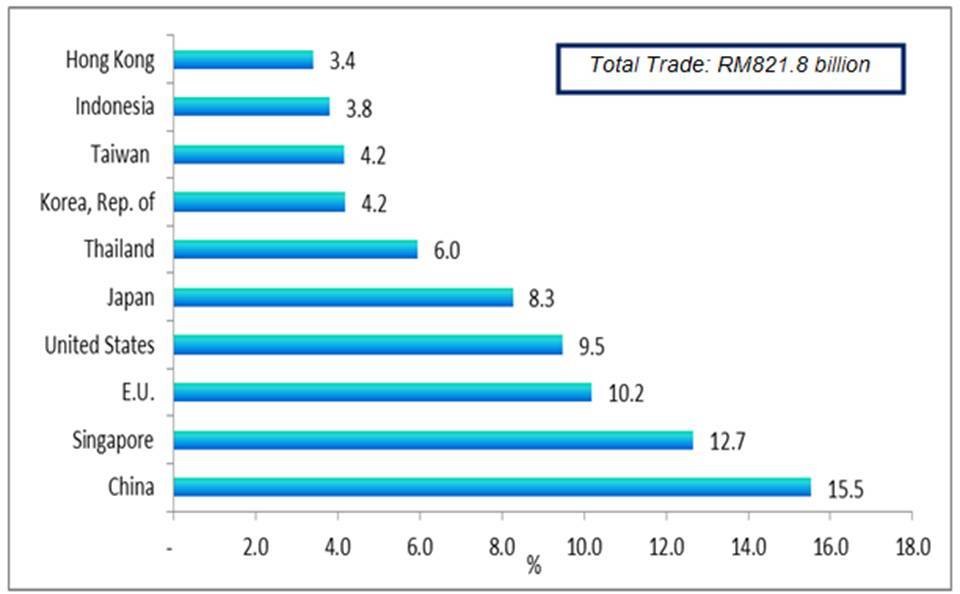 The following charts show Malaysia's major trading partners for January – July 2016.