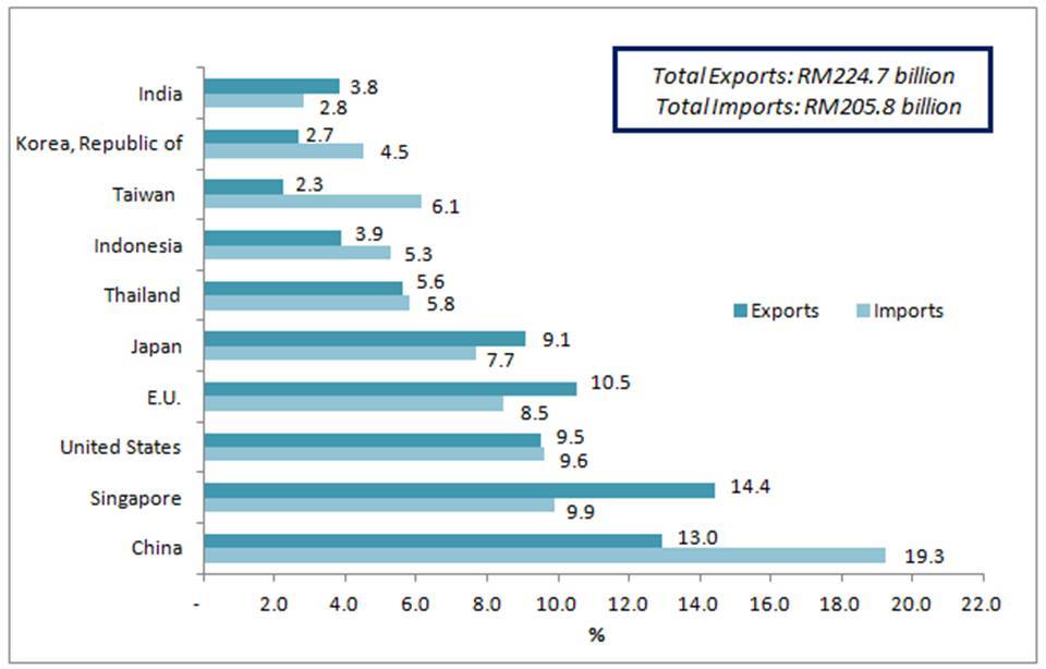 - On a y-o-y basis, higher imports were mainly from China (+RM4.7 billion), United States (+RM4.3 billion), Republic of Korea (+RM1.8 billion), Singapore (+RM1.5 billion) and European Union (+RM1.4 billion).