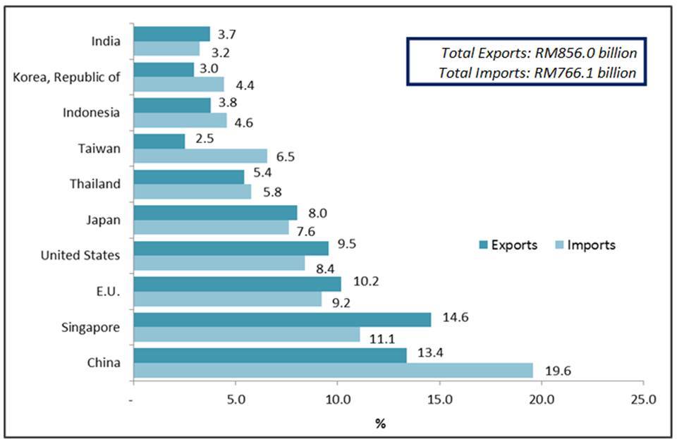 The following charts show Malaysia's major trading partners for January- November 2017