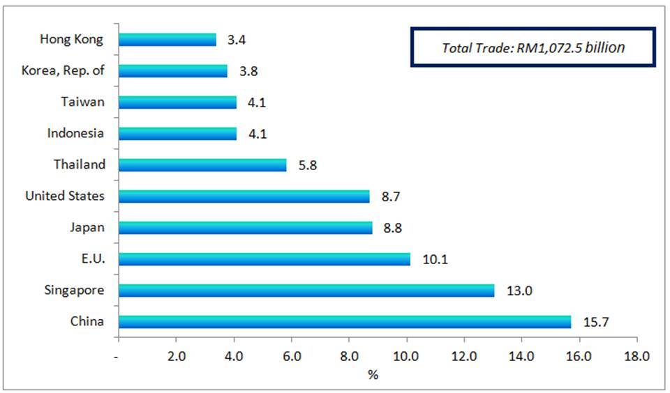 The following charts show Malaysia's major trading partners for January – September 2015.