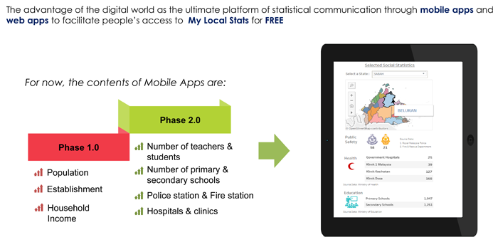 Benefitting from digital world as a main platform of statistical communications, My Local Stats can also be accessed through mobile apps and web apps free of charge.