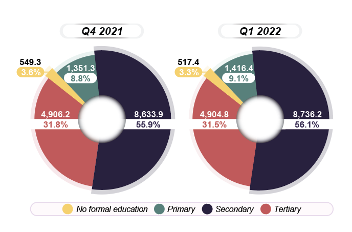 Chart 1: Employed Person by Educational Attainment, Malaysia, Fourth Quarter of 2021 & First Quarter of 2022, (‘000)
