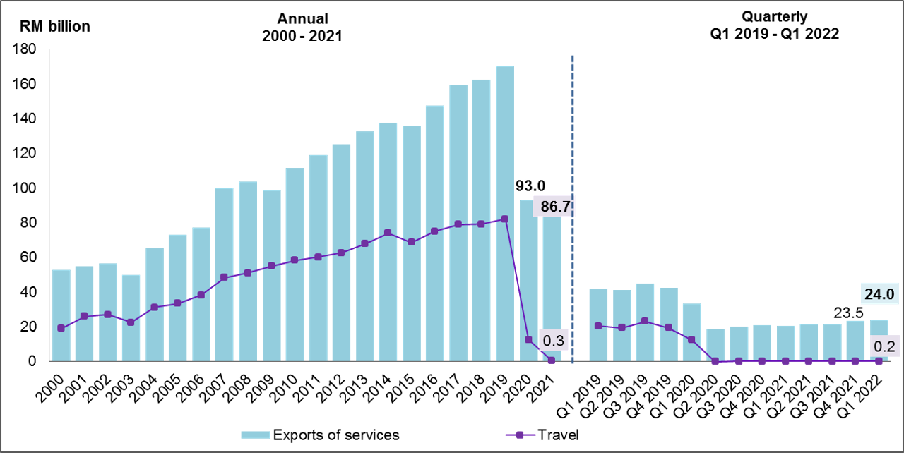 Moving forward, the economy will likely perform better than last year in the coming months after the transition to the endemic phase of COVID-19. With the reopening of the nation’s borders starting from 1 April 2022 to travelers from all countries, it is expected to boost the Travel component and subsequently will revive the Services sector. This is also anticipated to have a direct impact on the Transport, especially in the form of higher receipts from air passengers.