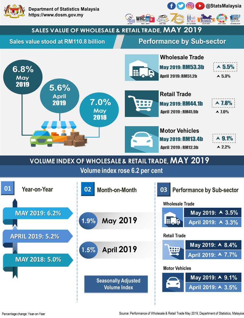 Sales Value of Wholesale & Retail Trade Recorded RM110.8 Billion in May 2019