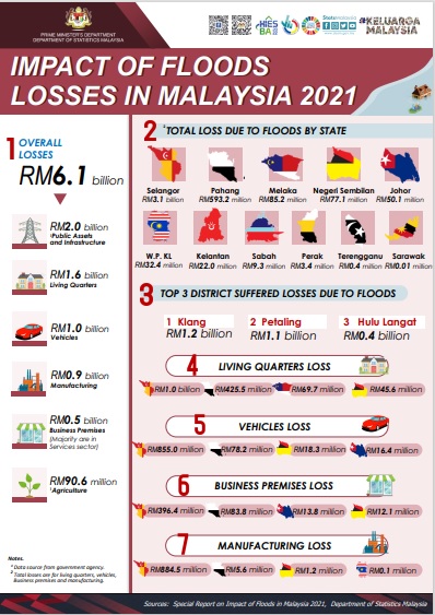 The full publication of the Special Report on the Impact of Floods in Malaysia, 2021 can be downloaded through the eStatistik portal