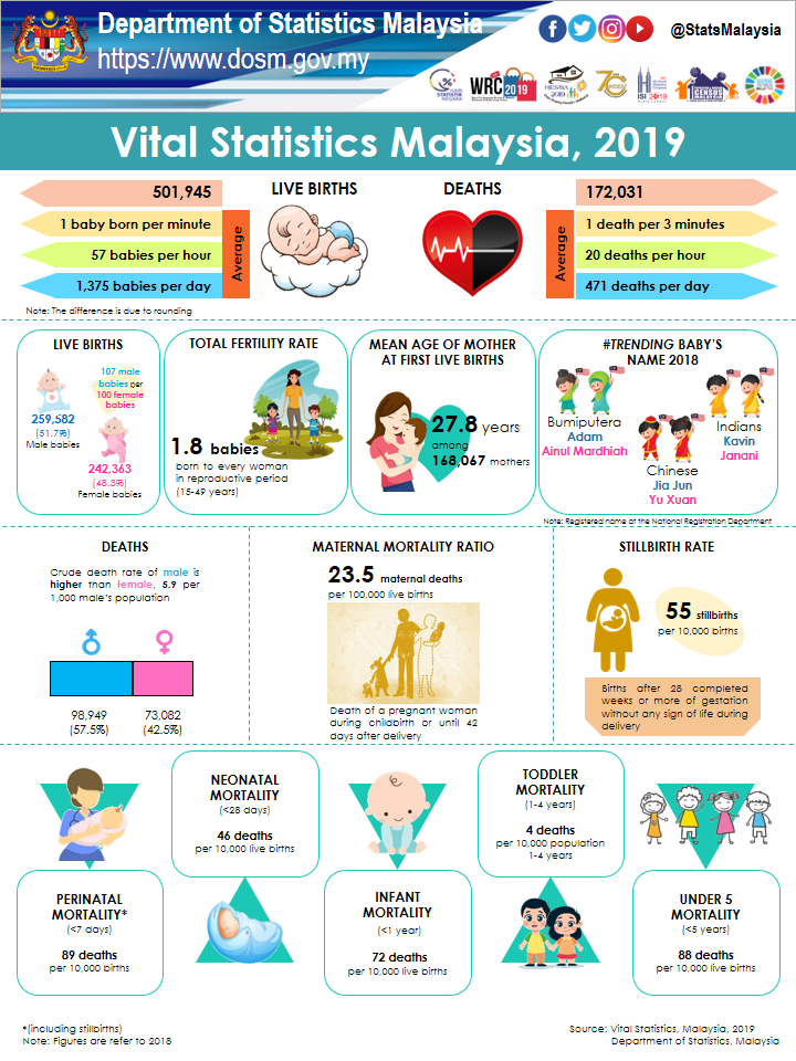 Since 2013, the national TFR recorded below replacement level of 2.1 which indicates that the average number of babies born per woman throughout her reproductive life has been insufficient to replace herself and her partner.